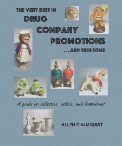 Readers of the book will find descriptions and photos of hundreds of extraordinary items, all designed to call attention to the thousands of drugs and medicines competing for attention of pharmacists and physicians, as well as patients. One cannot peruse the book without concluding that the pharmaceutical industry was right to end drug promotions of this kind. At the same time, those of us interested in the preserving the history of pharmacy can appreciate and value Col. Almquist’s effort to collect this now disappearing memorabilia and to document its use in a comprehensive – and thoroughly entertaining – book.