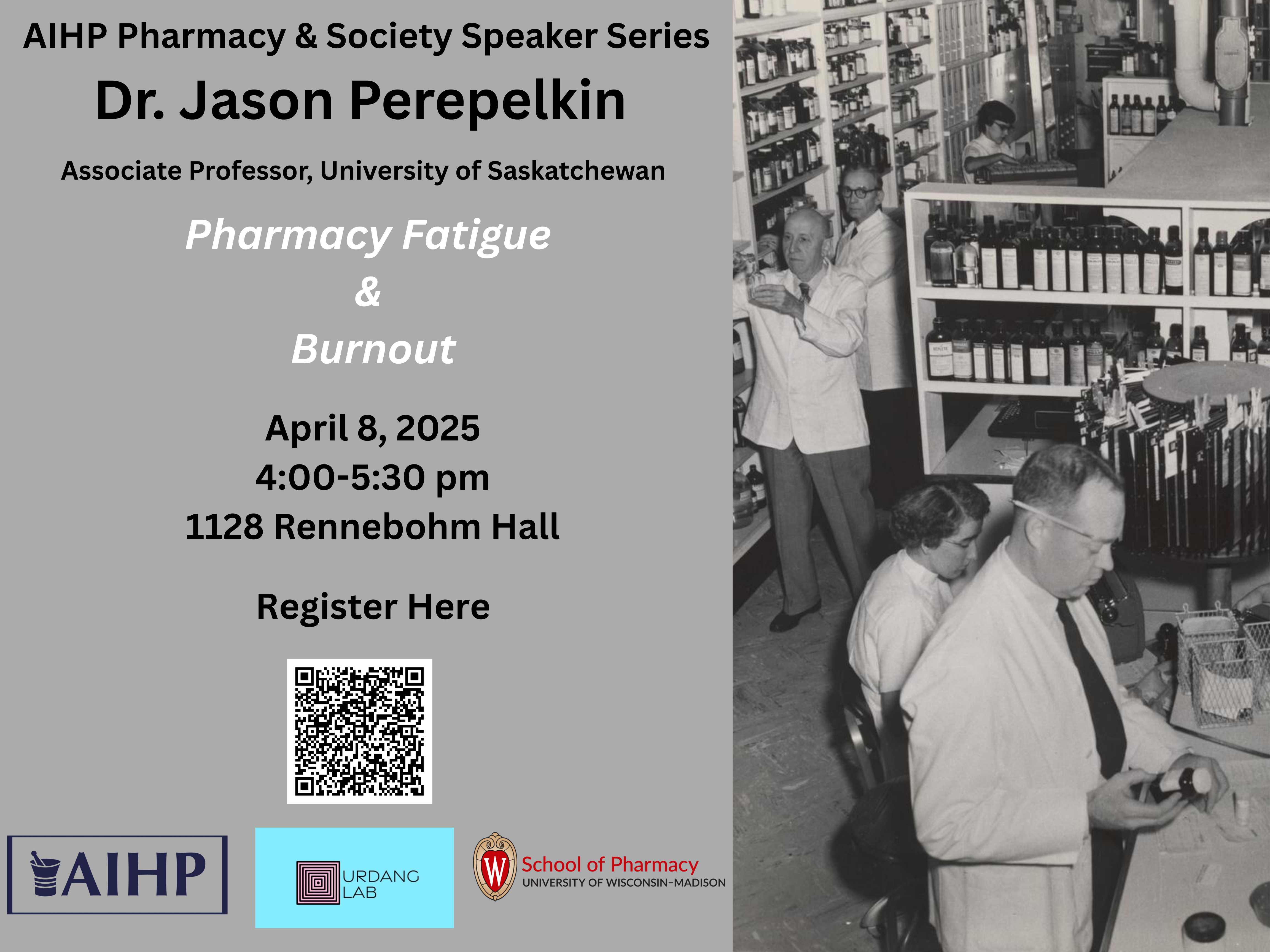 March 18, 2026, 11:00 am (Central): Pharmacy History Working Group: Ryan A. Kashanipour, University of Arizona